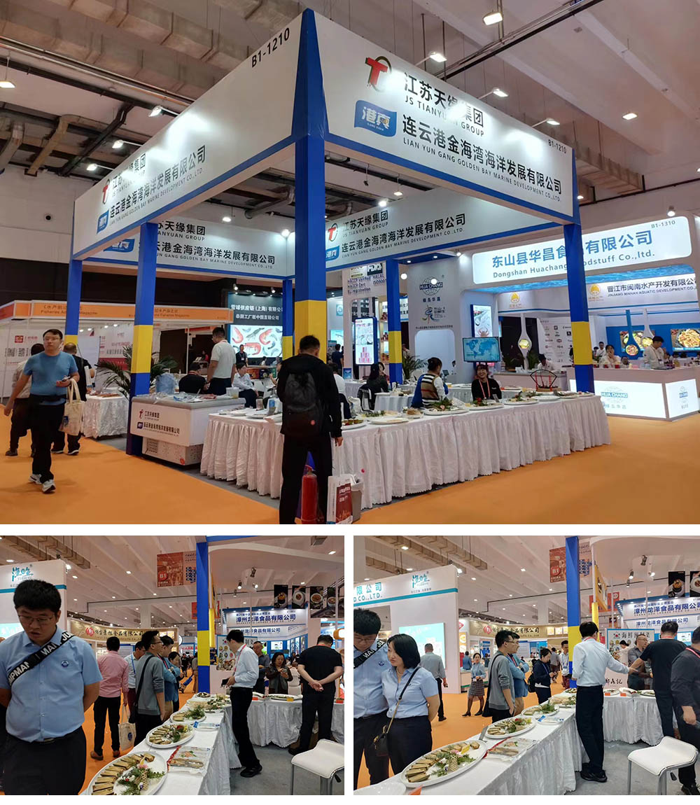 展會現場,人頭攢動,熱鬧異常,金海灣憑借造型各異的海參擺盤、新鮮碩大的黃魚、飽滿多汁的海蟶等招牌海產品吸引觀眾相繼駐足,接連問詢洽談,合作意向強烈。同時每天展示旗下產品各種烹制方法,并讓現場觀眾免費品嘗,便捷可口大家直呼過癮,現場收獲一致好評。