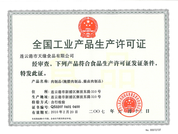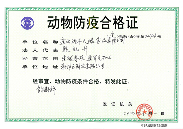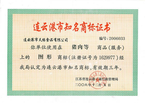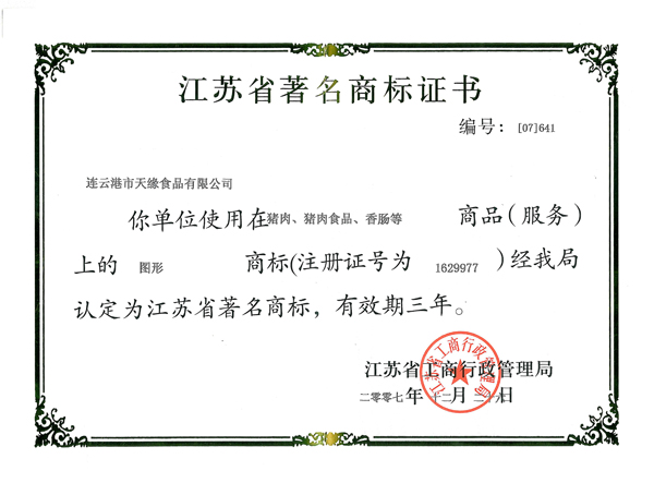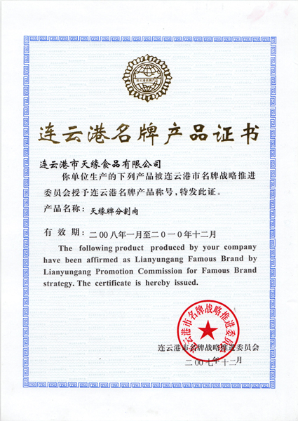 經(jīng)過多年的努力,公司先后取得了一定的成績。公司是政府“菜籃子”工程主要的肉類加工供應(yīng)商,是國家儲(chǔ)備肉定點(diǎn)廠和商品豬活體儲(chǔ)備基地,通過了省無公害農(nóng)產(chǎn)品認(rèn)定和無公害畜禽產(chǎn)地認(rèn)定;豬肉及肉制品的生產(chǎn)過程也先后通過了GB/T22000、QS體系認(rèn)證;“天緣”品牌先后多次被認(rèn)定為連云港市知名商標(biāo)、江蘇省著名商標(biāo);產(chǎn)品被評(píng)為江蘇省名牌農(nóng)產(chǎn)品、連云港市名牌產(chǎn)品、連續(xù)多屆被省消協(xié)評(píng)為放心食品、推薦商品;企業(yè)先后被評(píng)為市農(nóng)業(yè)產(chǎn)業(yè)化龍頭企業(yè)、信用管理示范企業(yè)、服務(wù)滿意單位、質(zhì)量管理先進(jìn)單位、連云港市優(yōu)秀民營企業(yè)、世界肉類大會(huì)優(yōu)秀參展商。多年來為政府“菜籃子”工程、保障食品安全和帶動(dòng)廣大農(nóng)民致富作出了突出貢獻(xiàn)。